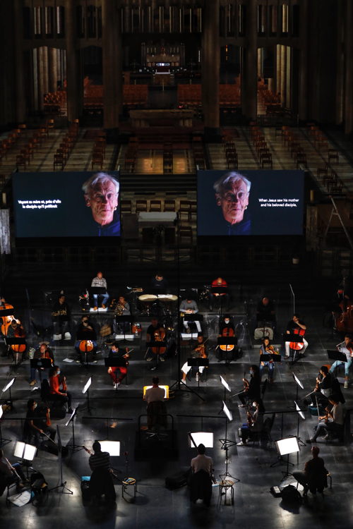 Acteur Johan Leysen kruipt in de huid van Jezus. De samenwerking met Leysen is meteen een primeur voor het Brusselse orkest. De acteur, die verbonden is aan het NTGent en bekend is van verschillende Belgische series en films, zal live tijdens het concert de laatste woorden van Jezus gestalte geven. Fotograaf Stef Van Alsenoy projecteert passende zwart-wit sfeerbeelden en video’s op levensgrote ledschermen. Dirigent van dienst is de flamboyante Fransman Hervé Niquet. Hij werkt al vele jaren met Brussels Philharmonic samen en is gepokt en gemazeld in het barok repertoire. Samen zorgen ze voor een kippenvelmoment in de basiliek vrijdagavond.