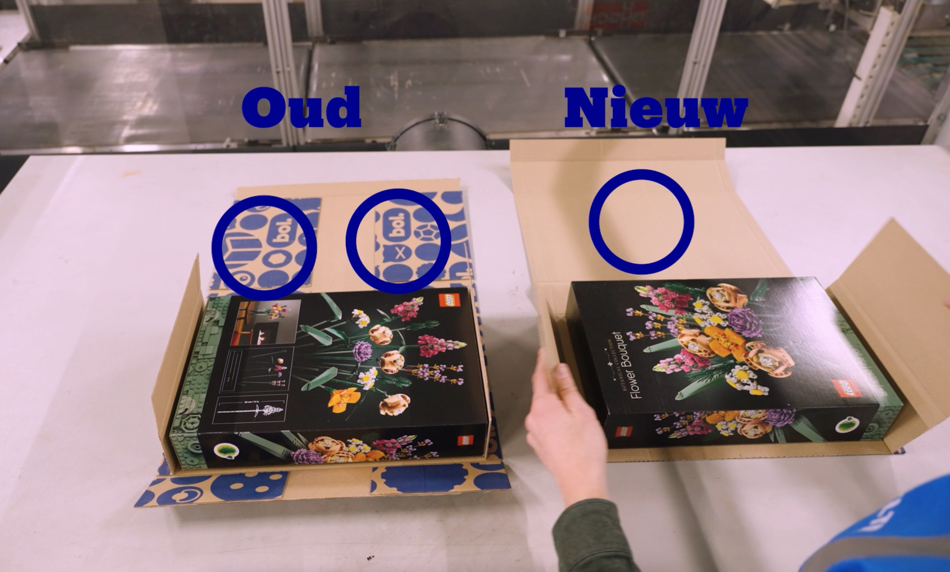 Bol bouwt zijn inpakmachines voor bestellingen van één artikel om, waardoor ze veel minder karton en lijm verbruiken. Dankzij de verbeterde techniek wordt 27% minder karton en 60% minder lijm gebruikt, en 28% CO2-uitstoot per pakket bespaard. Zo’n 25% van alle pakketten die dagelijks worden verwerkt in het bol fulfilment center (BFC) in Waalwijk, worden ingepakt door deze zogenoemde mono-inpakmachines. Bol is de eerste e-commercepartij in Europa die deze nieuwe ombouwtechnologie in samenwerking met fabrikant CMC toepast op de bestaande inpakmachines.