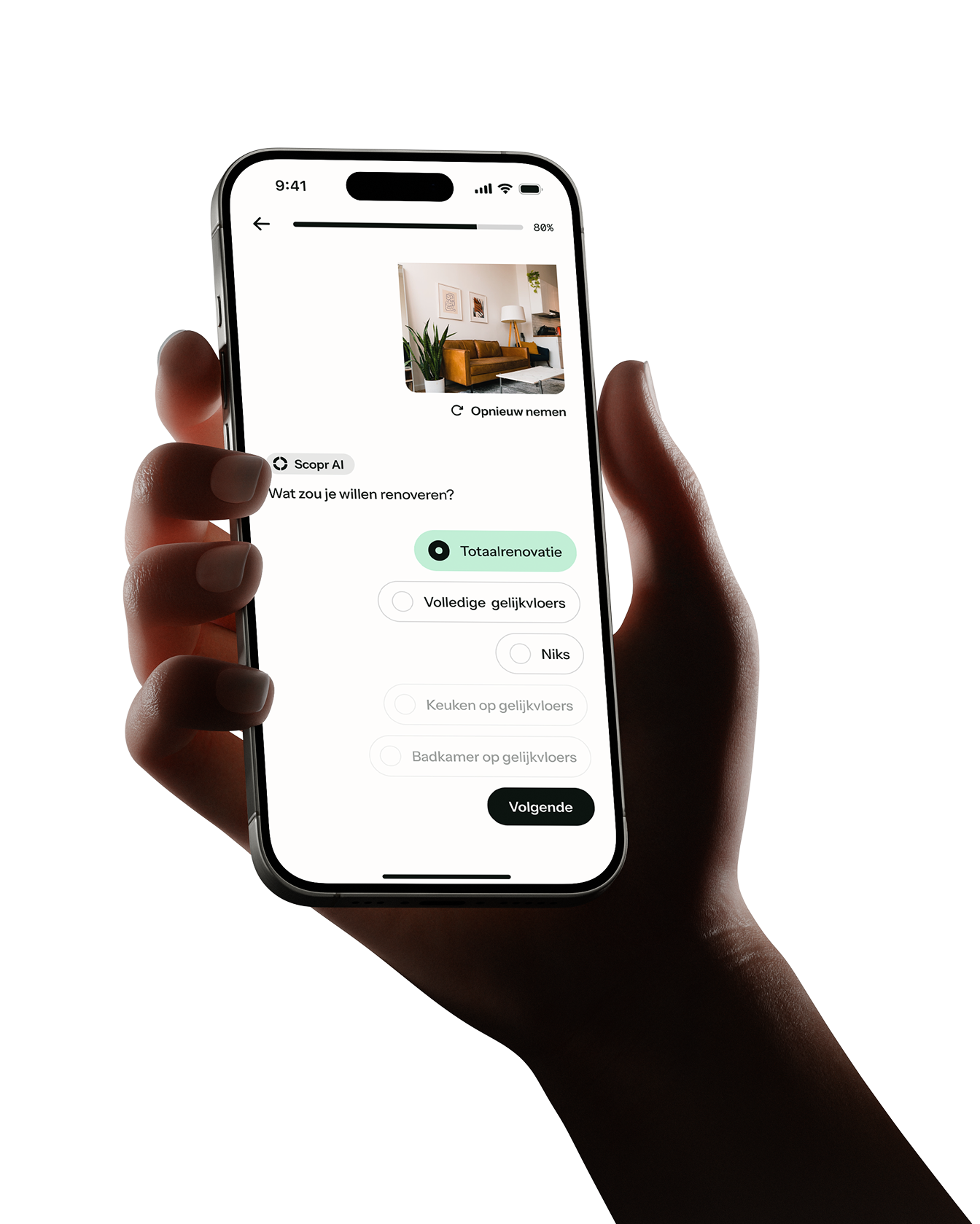 Concreet moet een huizenjager een aantal vragen invullen zodat de applicatie zicht krijgt op bijvoorbeeld het maximaal beschikbare renovatiebudget, stijl, enz. Tijdens het huisbezoek kan de bezoeker foto’s van het pand, het EPC-attest, de elektriciteitskeuring en nog andere documenten uploaden. Binnen de 15 minuten geeft SCOPR.ai, volledig gratis en via eigen ontwikkelde artificiële intelligentie, een exacte en transparante inschatting van de staat van de woning en de renovatiekosten. Daarbij houdt het niet enkel rekening met de kost van het energetisch materiaal, maar ook met de afwerking. Op die manier weet je meteen of de bezochte woning haalbaar is en kan je je bod erop afstemmen. Die erg persoonlijke benadering is uniek in ons land.